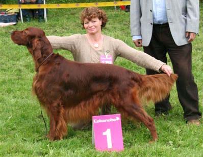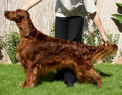 | Österr. Champion Memory of Ireland´s Red Rock "Rocky" (Vivat´s Aying x Kleo von Pinkafeld) ÖHZB/IS 2766, 12.1996 - 2003 Formwert: Vorzüglich, CACA, Res.CACIB, Bundessieger Befunde: HD - A (normal), CLAD-NN (frei) Prüfungen: Anlagenprüfung |