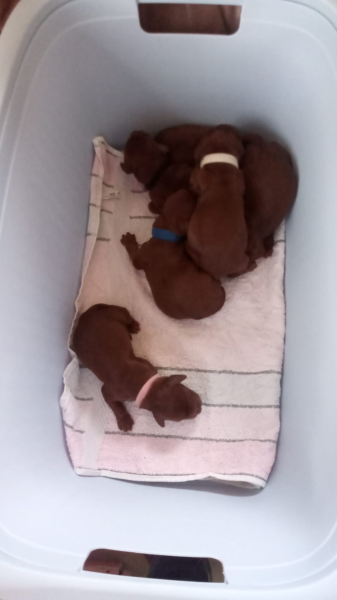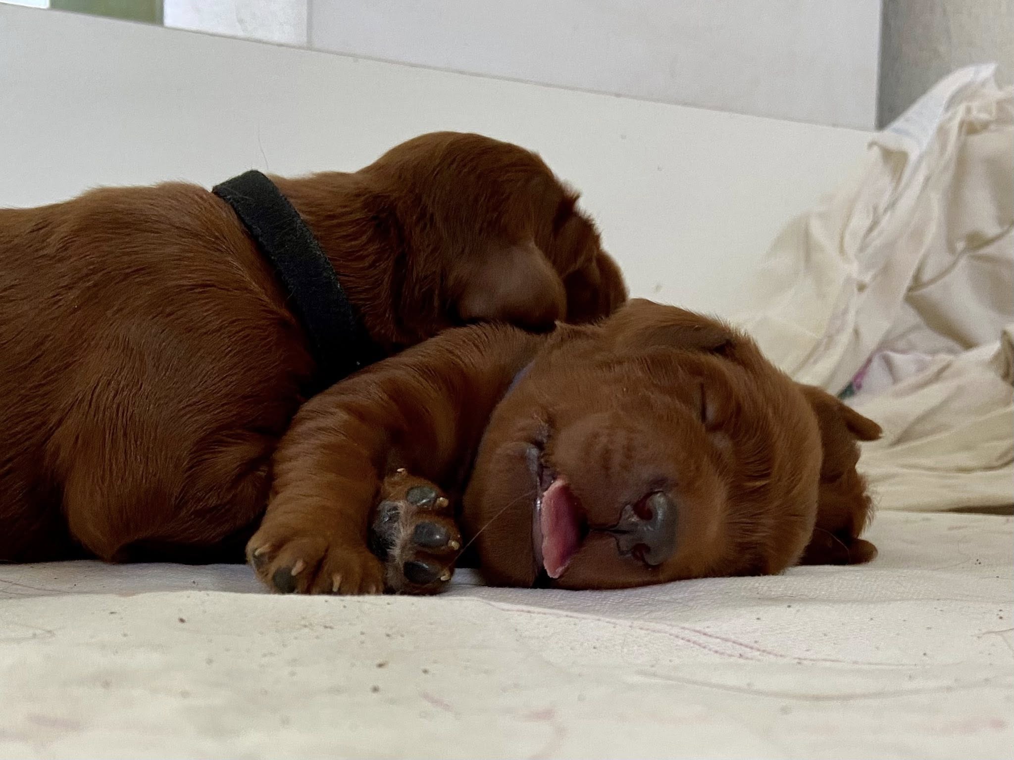 Am 26.2.2026 hat Amy innerhalb von 3 Stunden 6 Welpen nach Aaron Arno Redweed geboren. Den Welpen und Amy geht es bestens.