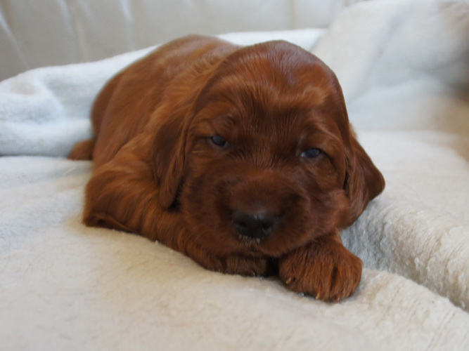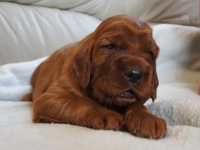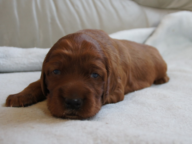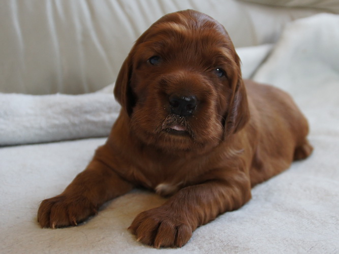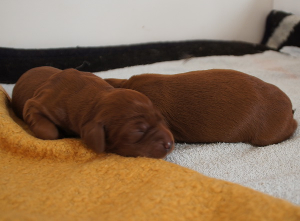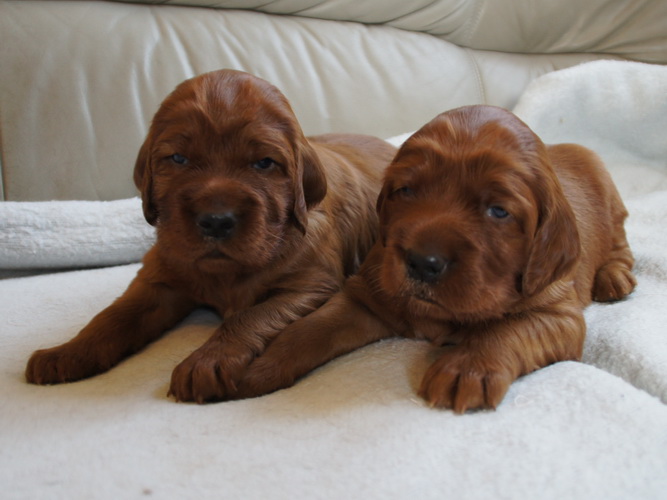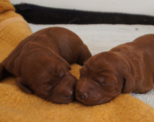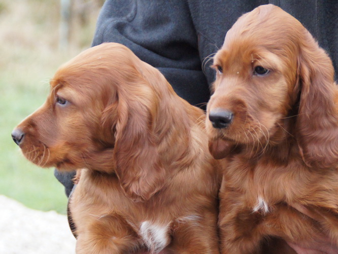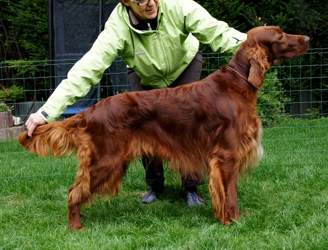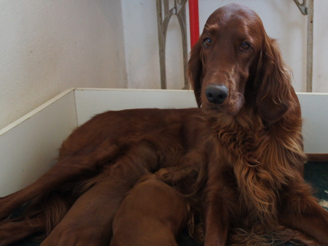 Beide Elterntiere sind HD-frei, Clad-frei, haben auf Ausstellungen vorzügliche Bewertungen erhalten und sind voll integrierte Familienmitglieder. Sie sind geduldig mit Kindern und freundlich zu allen Menschen und Hunden.