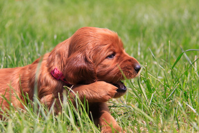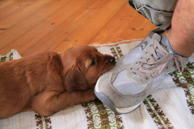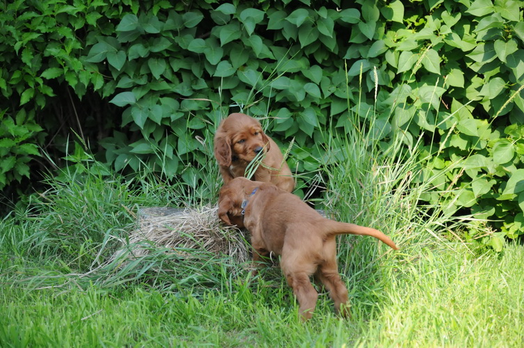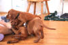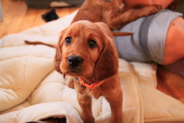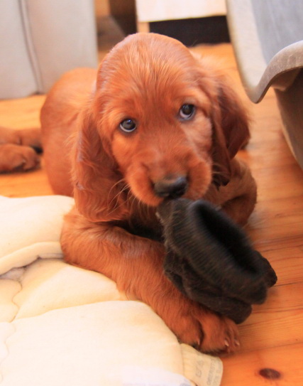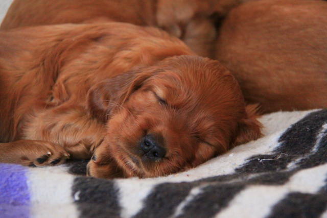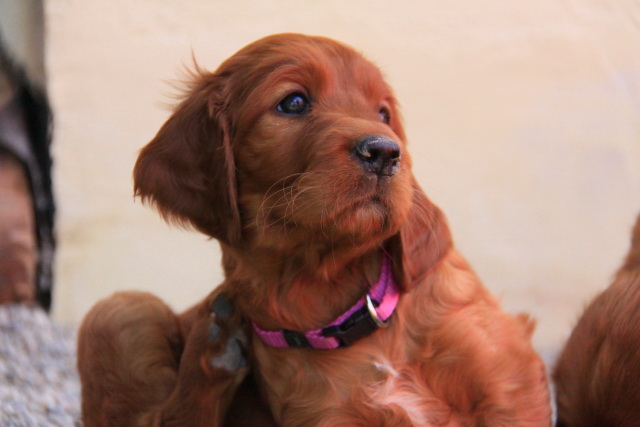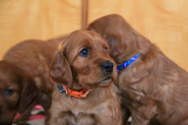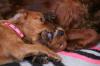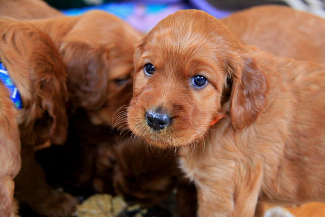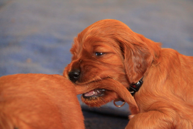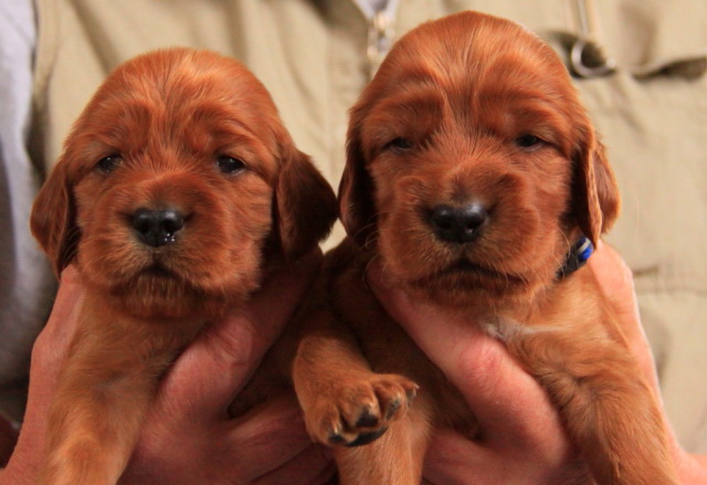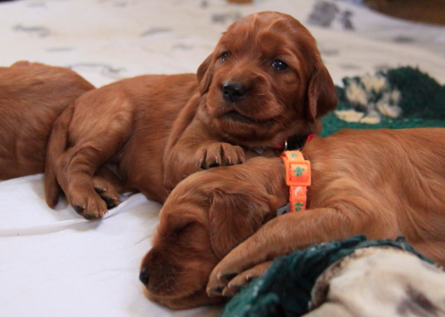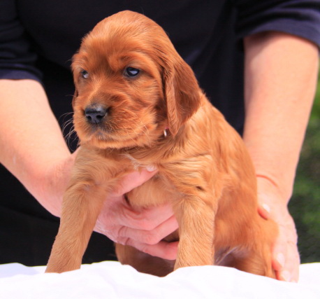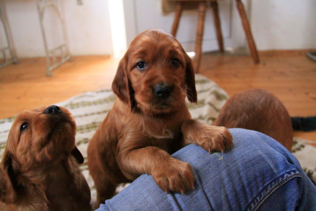 Beide Elterntiere sind HD-frei, Clad-frei, PRA rcd-4 frei, haben auf Ausstellungen vorzügliche Bewertungen erhalten und sind voll integrierte Familienmitglieder. Sie sind geduldig mit Kindern und freundlich zu allen Menschen und Hunden.