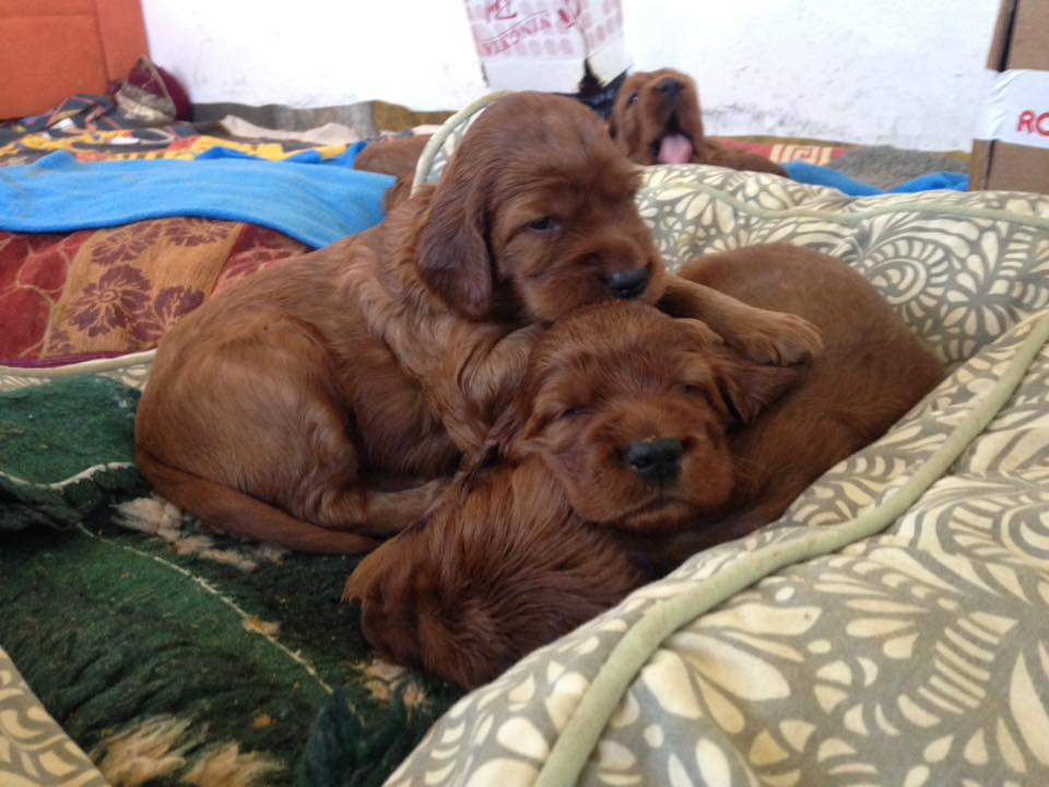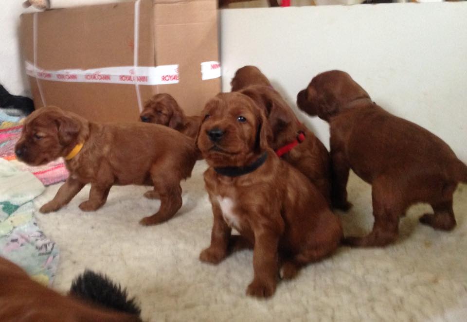 Die Eltern sind HD-frei, Clad-frei, PRA rcd-4 frei und haben auf Ausstellungen vorzügliche Bewertungen erhalten. Sie sind geduldig mit Kindern und freundlich zu allen Menschen und Hunden.