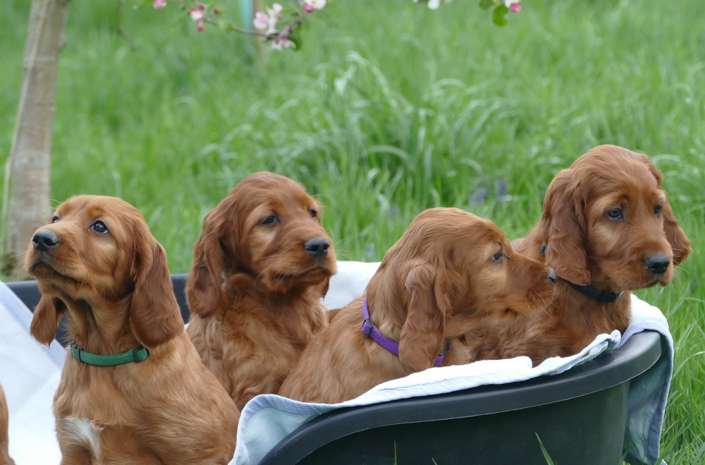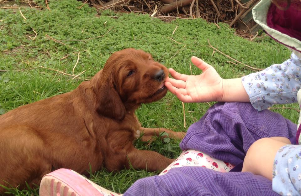 Uns ist es besonders wichtig, Setter mit einem freundlichen Wesen zu züchten. Die Welpen wachsen bei uns im Haus auf und lernen daher in den ersten 9 Wochen bereits einiges kennen: Menschen verschiedener Altersstufen (von meinen 4 Enkelkindern bis zu Senioren), Staubsauger, Fernseher, Autofahren,.....